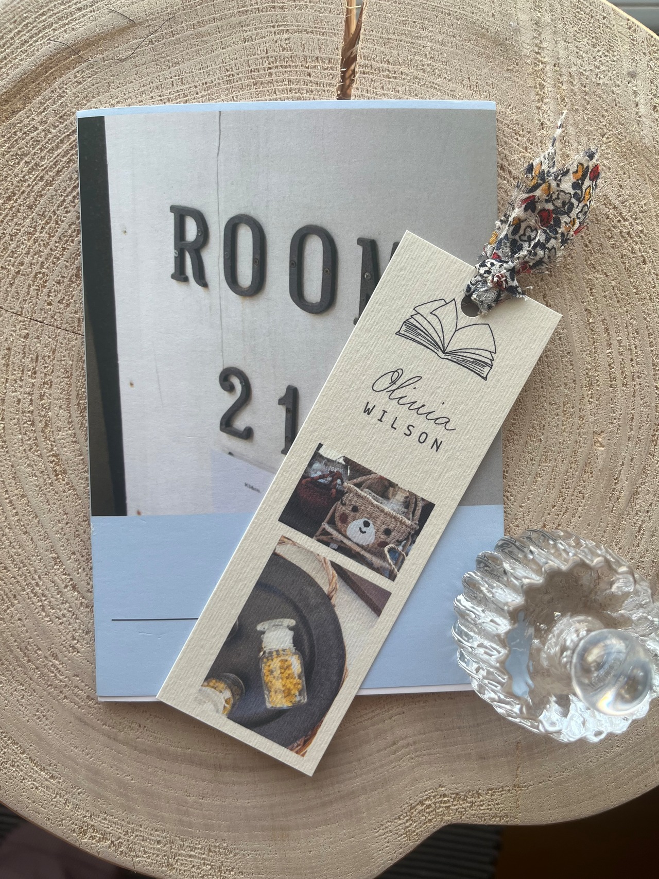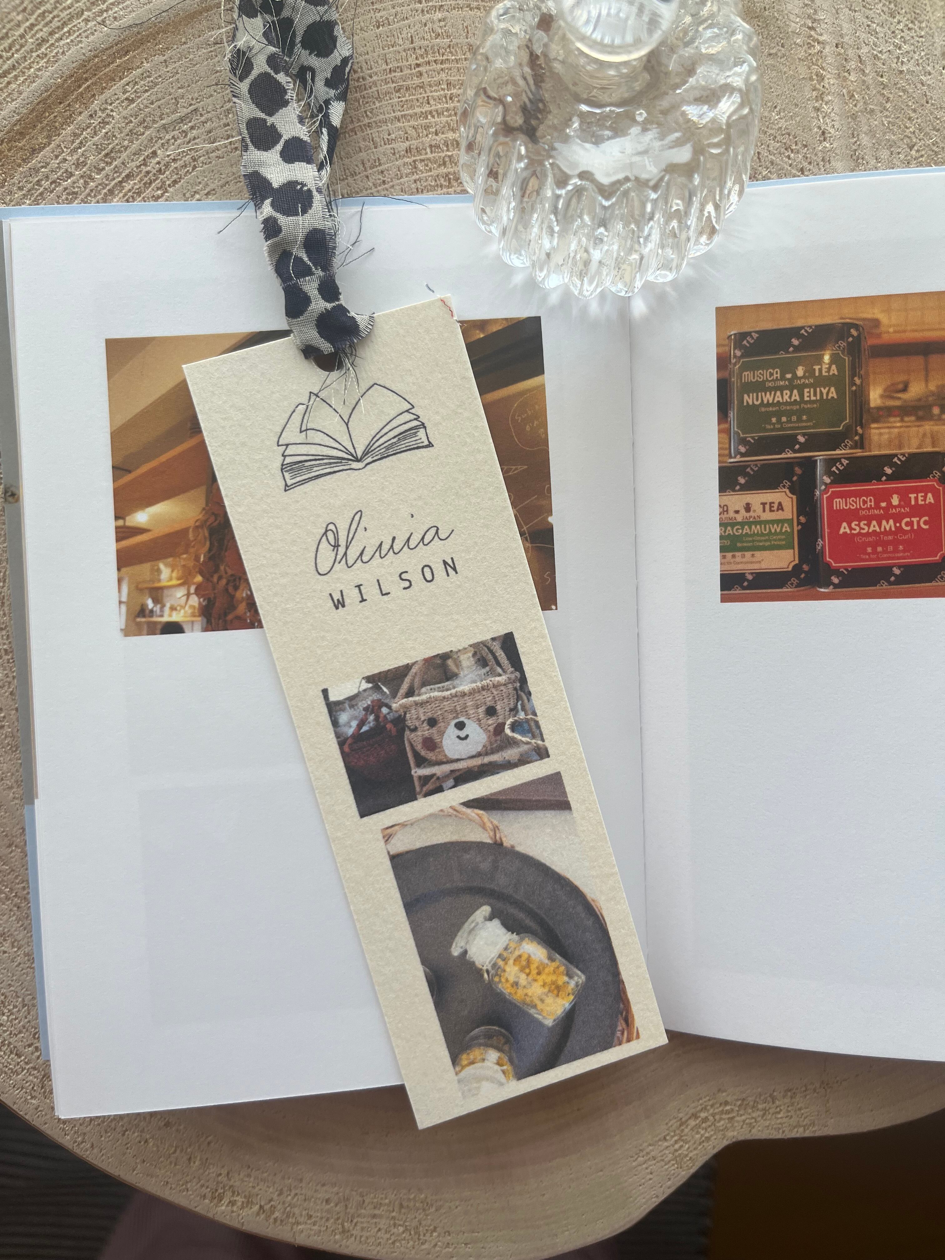 しおりには可愛いテキスタイルのハギレを